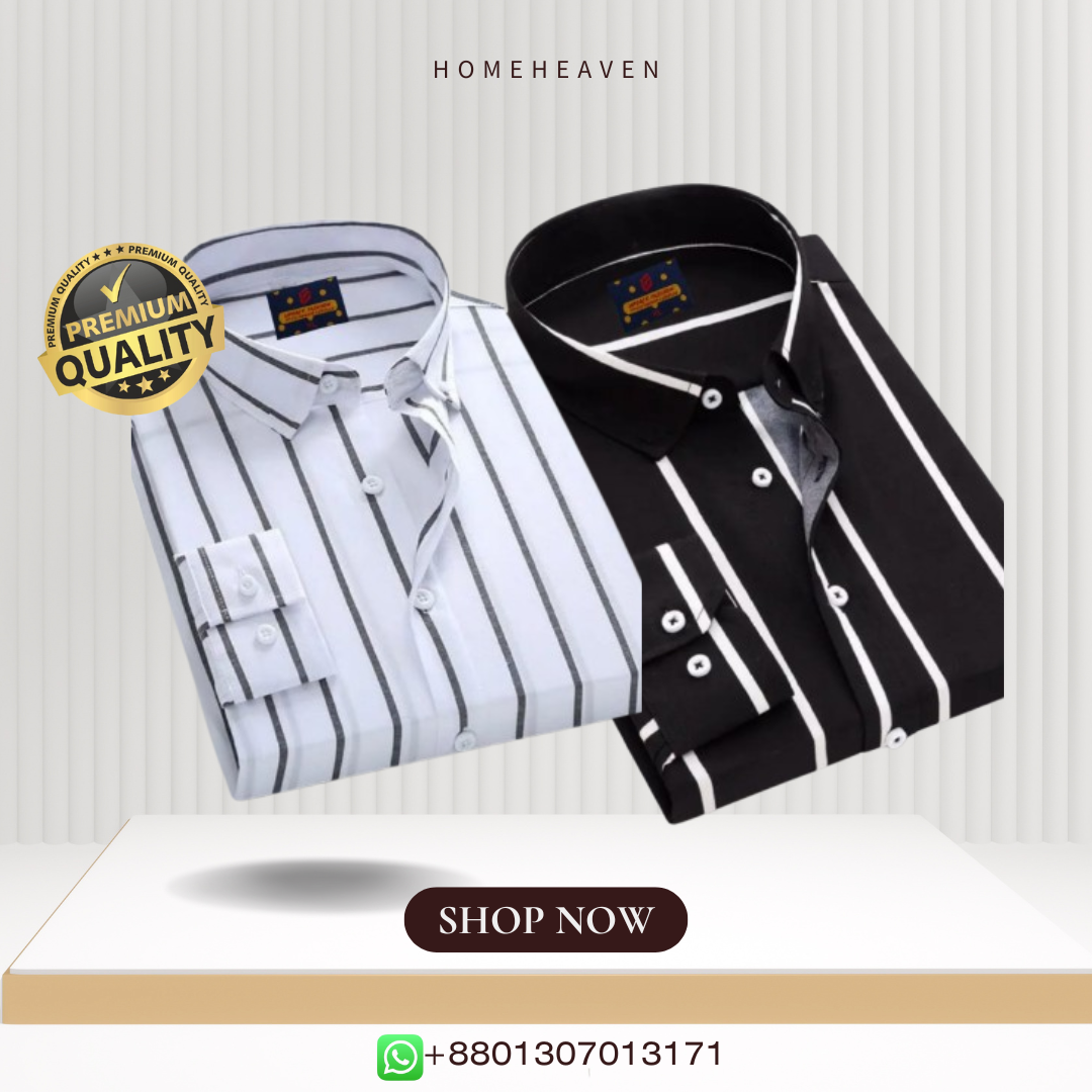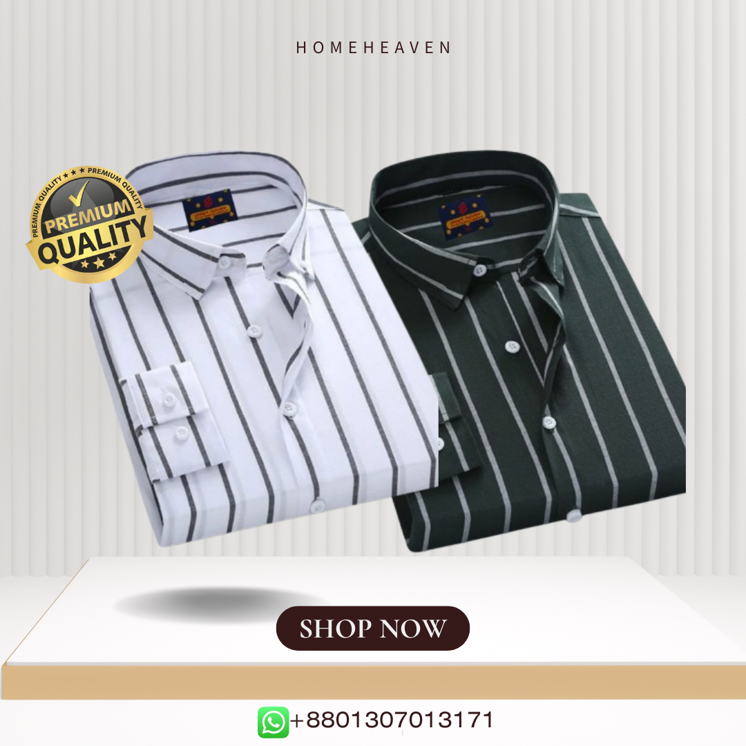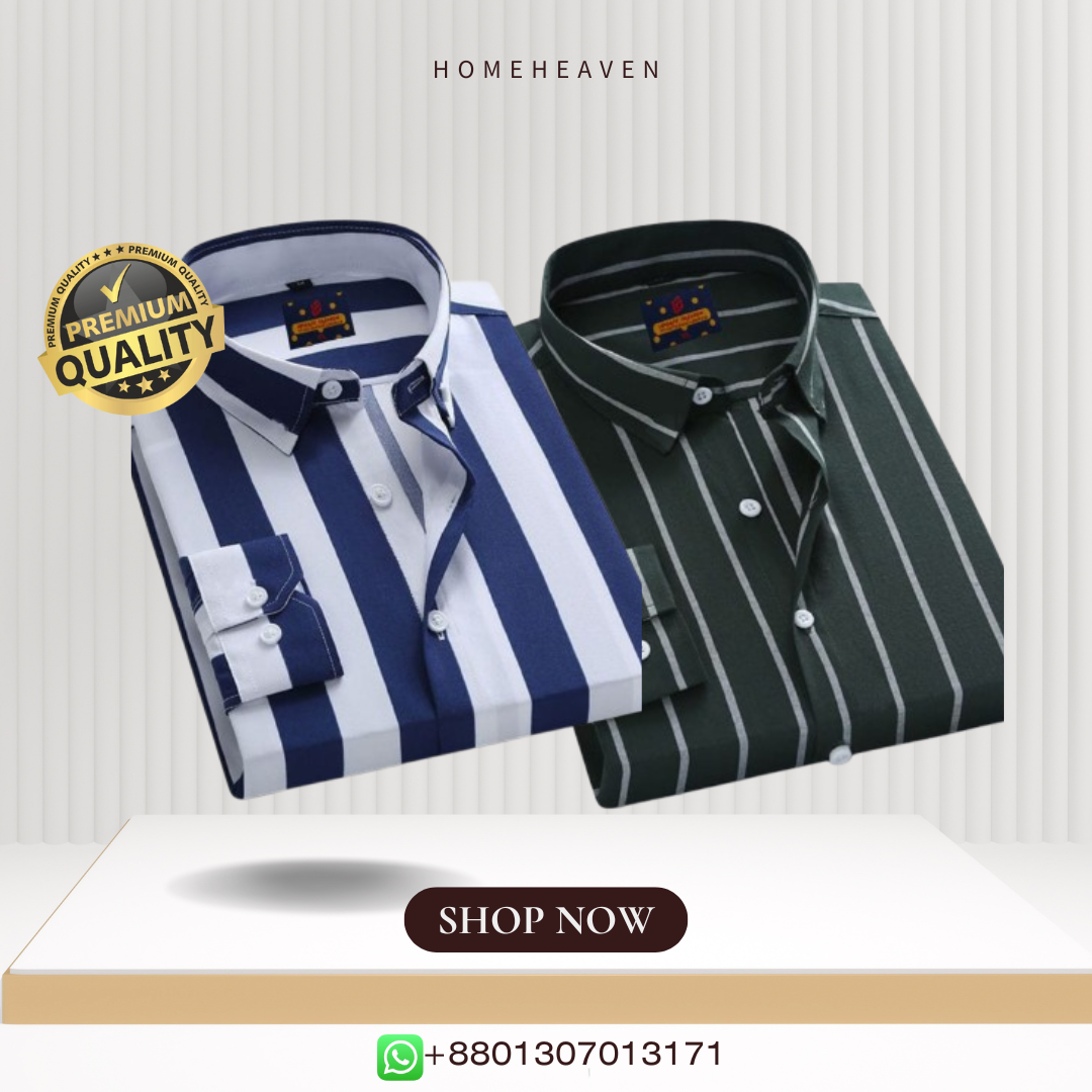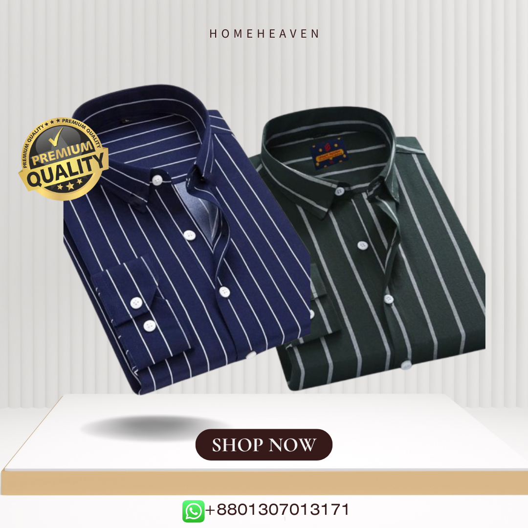 স্টাইল ও আরামের জন্য পারফেক্ট আমাদের পুরুষদের প্রিমিয়াম স্ট্রাইপ শার্ট ২-পিস। নরম, টেকসই এবং সুন্দর ডিজাইনের এই শার্ট অফিস, আউটিং বা যে কোনো অনুষ্ঠানে পরার জন্য উপযুক্ত।