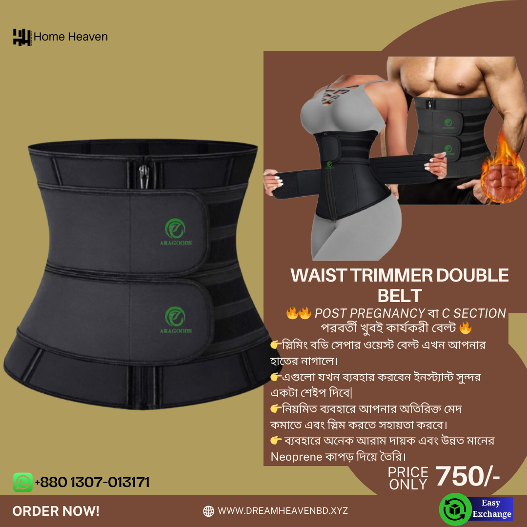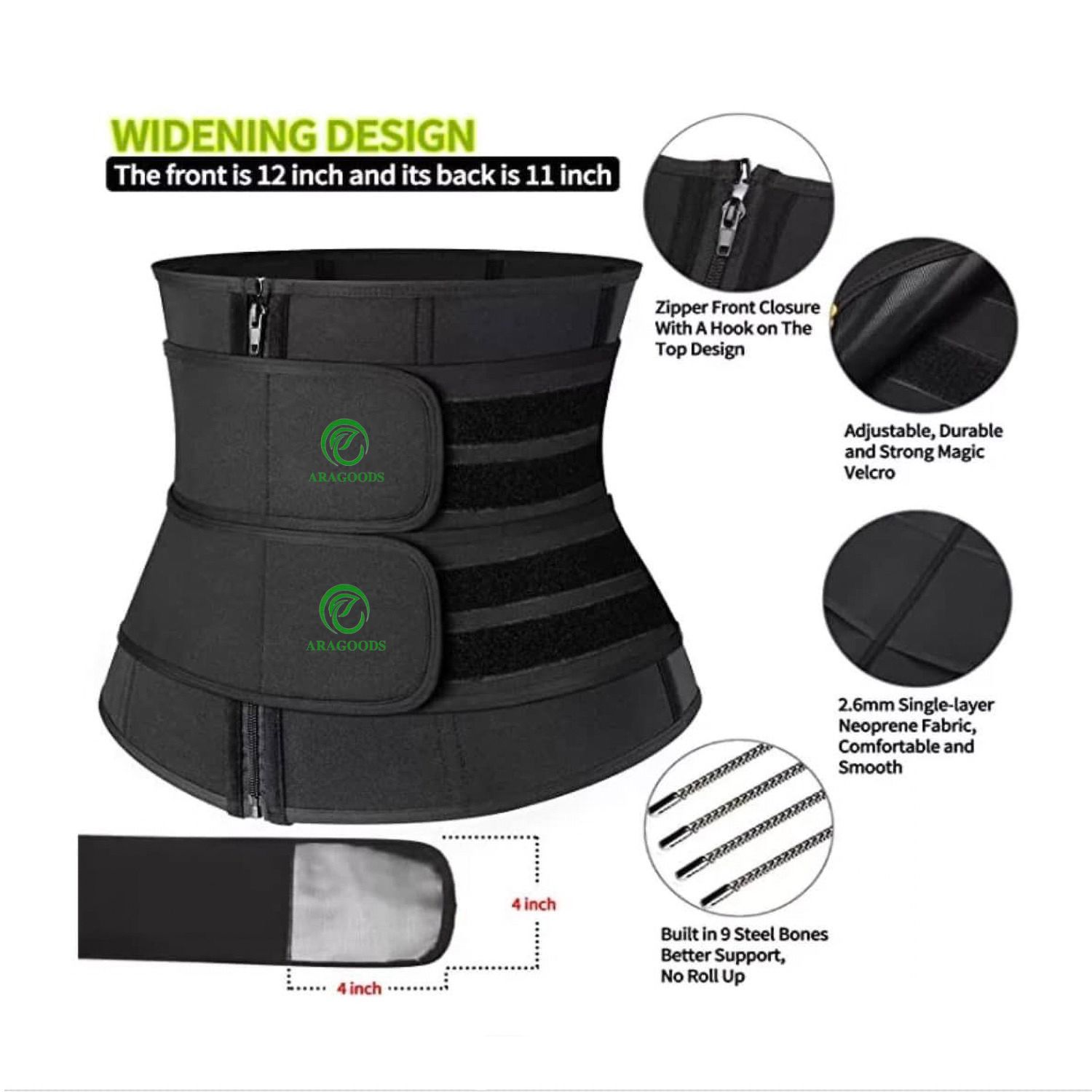 Waist Trimmer Belt with Double Strap. Durable and high quality waist trainer with semi-automatic zip design to avoid slipping. You can adjust the double belt to tighten the waist. The belt can be easily combined with any top and does not stand out. If you have lower back problems, our waist trainers help like a compression binder around the waist to support the lumbar spine, relieve pain and improve sitting posture. It has neoprene for fat burning and losing weight. This waist trimmer can shape your waist and give you an hourglass figure. This body shaper helps to shape and reduce the waist of your stomach. Helps you eliminate toxins, speed up the calorie burning process and keep your muscles warm and supported to avoid fatigue and injury after exercise. Helps you recover faster after pregnancy. Suitable for a variety of occasions. The waist belt also smooths the abdominal muscles after birth. Wearing it you can, do sports, gym, run outdoors, sit in the office while supporting the waist and back.